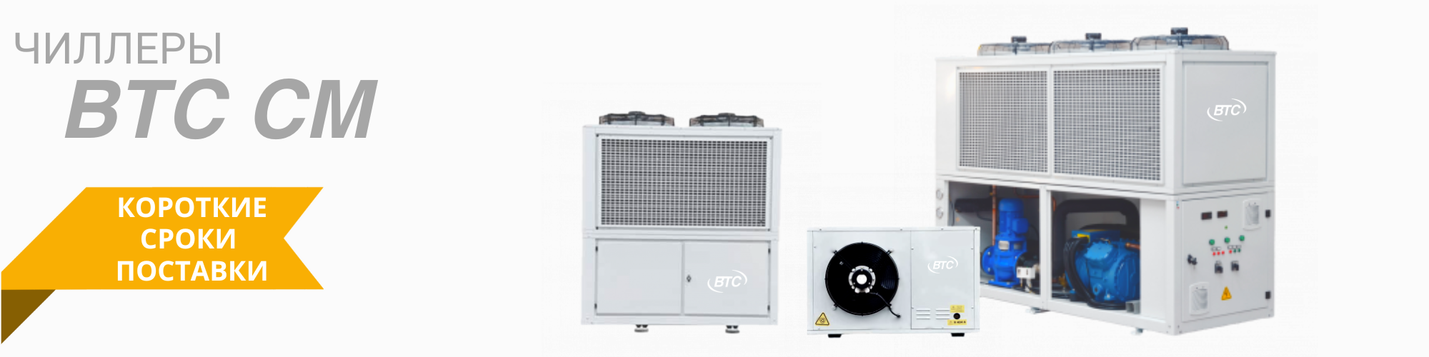 Компания BTC предлагает короткие сроки поставки на холодильные установки BTC CM мощностью от 5 кВт до 200 кВт.