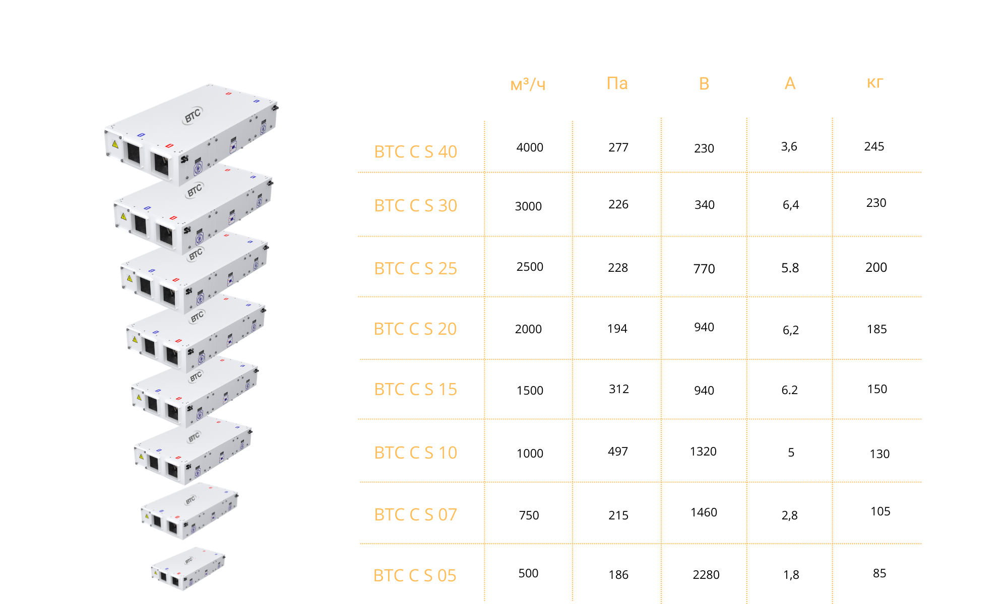 Подвесные агрегаты BTC Compact S — это энергосберегающие компактные устройства, которые используются для вентиляции и кондиционирования воздуха, размещаются под потолком для экономии пространства. Наружный воздух проходит через рекуператор и нагревается удаляемым воздухом из вентилируемых помещений, проходящим через тот же теплообменник, два воздушных потока не смешиваются друг с другом. Компактные подвесные агрегаты не требуют большого технического пространства для монтажа и используются на таких объектах, как торговые центры и офисные здания.