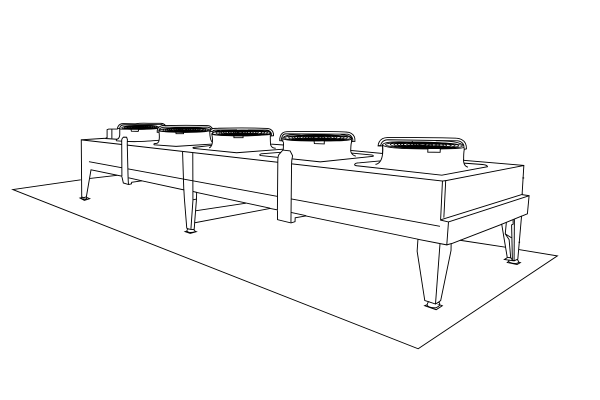 Небольшая V-образная конструкция (вертикальный поток воздуха) разработана для использования в коммерческих системах охлаждения и кондиционирования воздуха, системах технологического охлаждения, в системах электростанций и т. д.