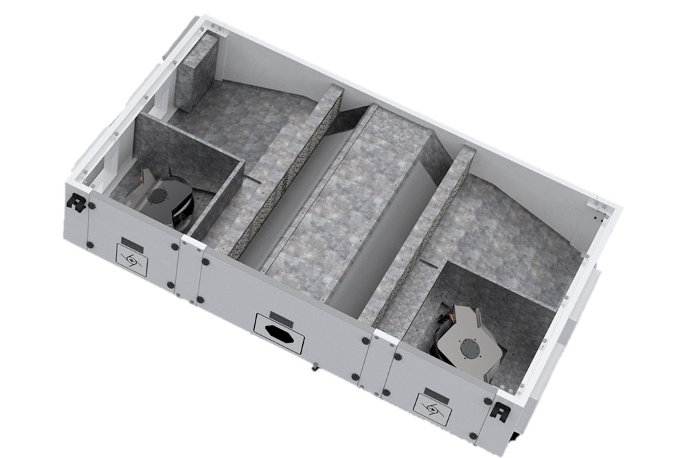 Компактные подвесные агрегаты для вентиляции и кондиционирования воздуха BTC Compact S имеют высокоэффективные перекрестноточные гексагональные рекуператоры с КПД до 90%.